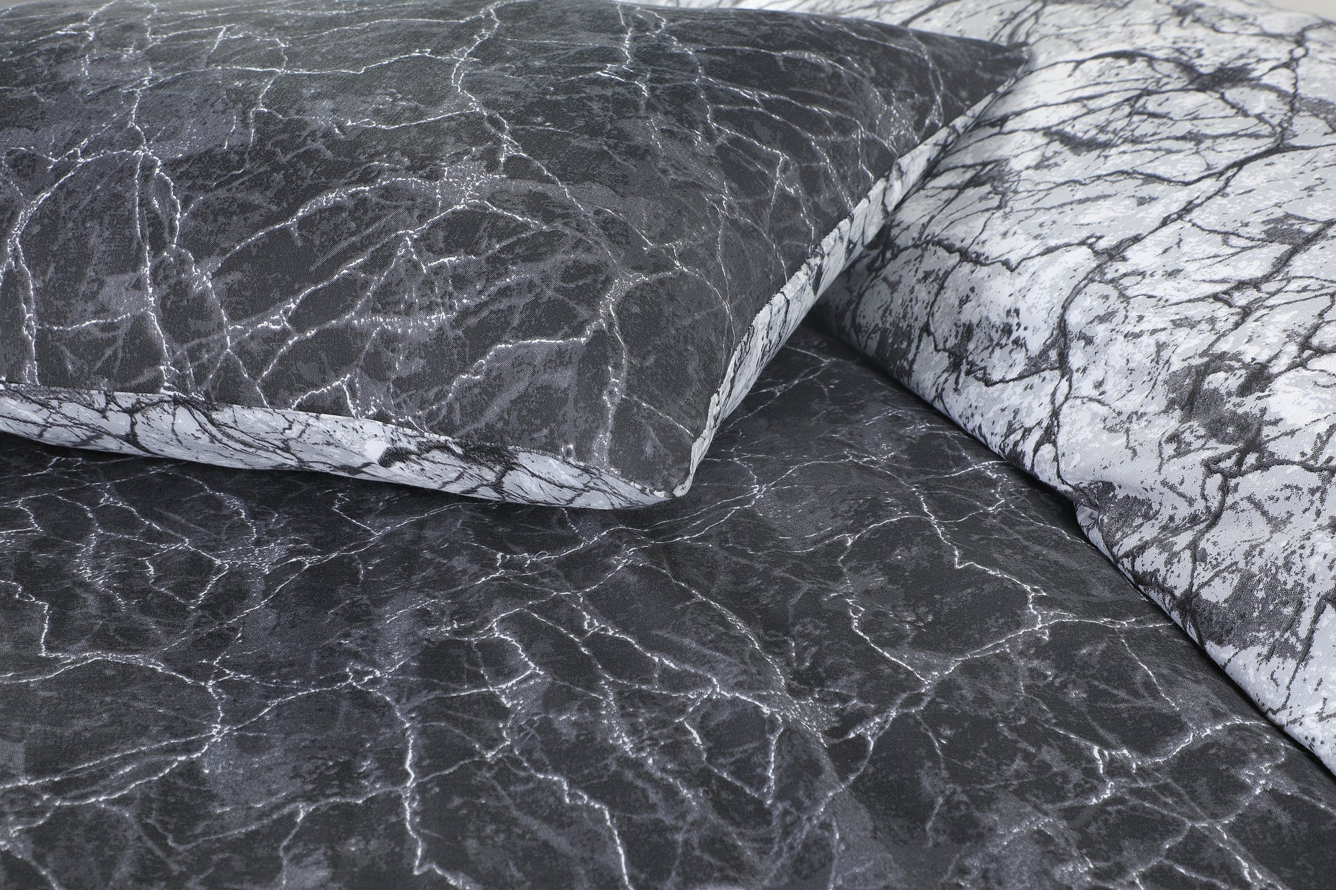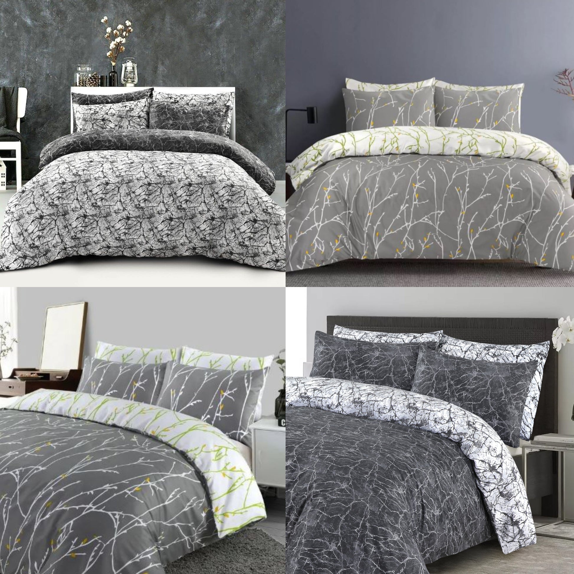 Printed Duvet Cover Black Bedding Set with Pillowcases Grey Reversible Double King Super King UK Size Quilt Covers